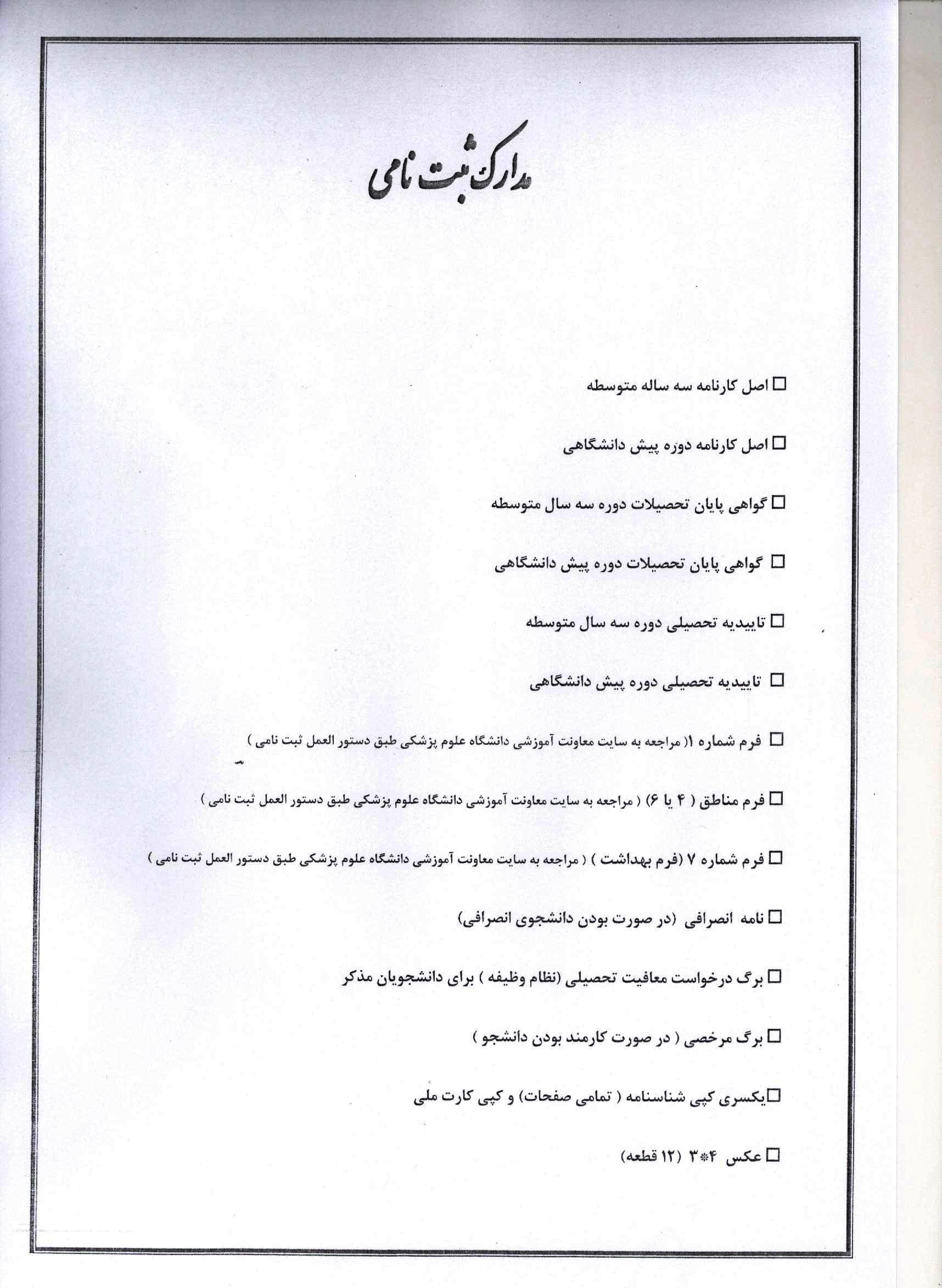 * مدارک ثبت نام* فرآیند ثبت نام