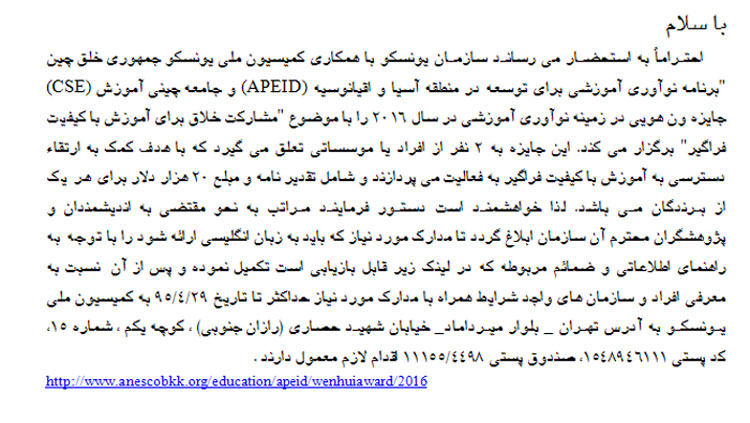 در زمینه نوآوری آموزشی در سال 2016 با موضوع مشارکت خلاق برای آموزش با کیفیت فراگیر