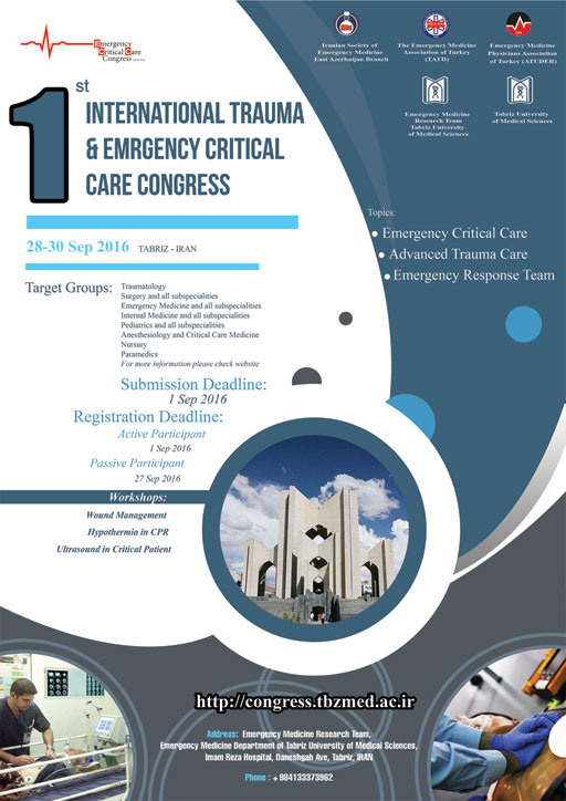 اولین همایش بینالمللی تروما و مراقبتهای بحرانی اورژانس. تبریز- ایران