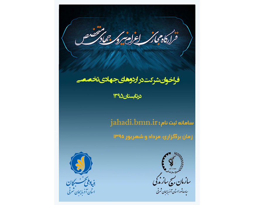 اردوهای جهادی تابستانی 10 مرداد الی 30 شهریور کد خبر : 33093 کپی کلمات کلیدی : بنیاد نخبگان استان طرح بسیج سازندگی اردوهای جهادی تابستانی