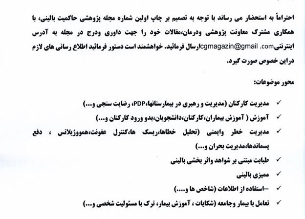 تاریخ انتشار : چهارشنبه ۱۹ مهر ۱۳۹۱ تعداد بازدید کنندگان خبر : 972 زمان مطالعه : 0 دقیقه چاپ اولين شماره مجله پژوهشي حاكميت باليني ... کد خبر : 32105 کپی ارسال نظر ثبت