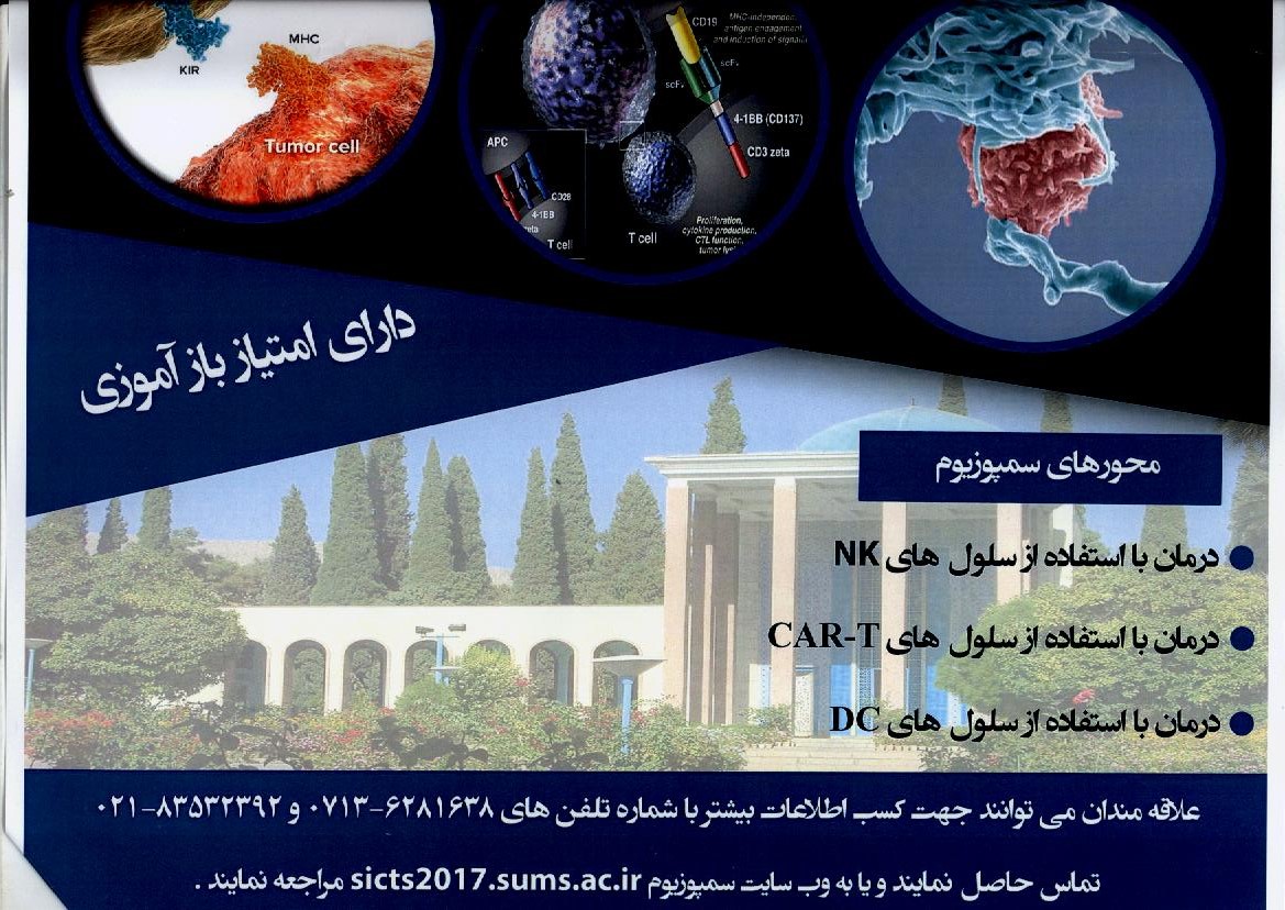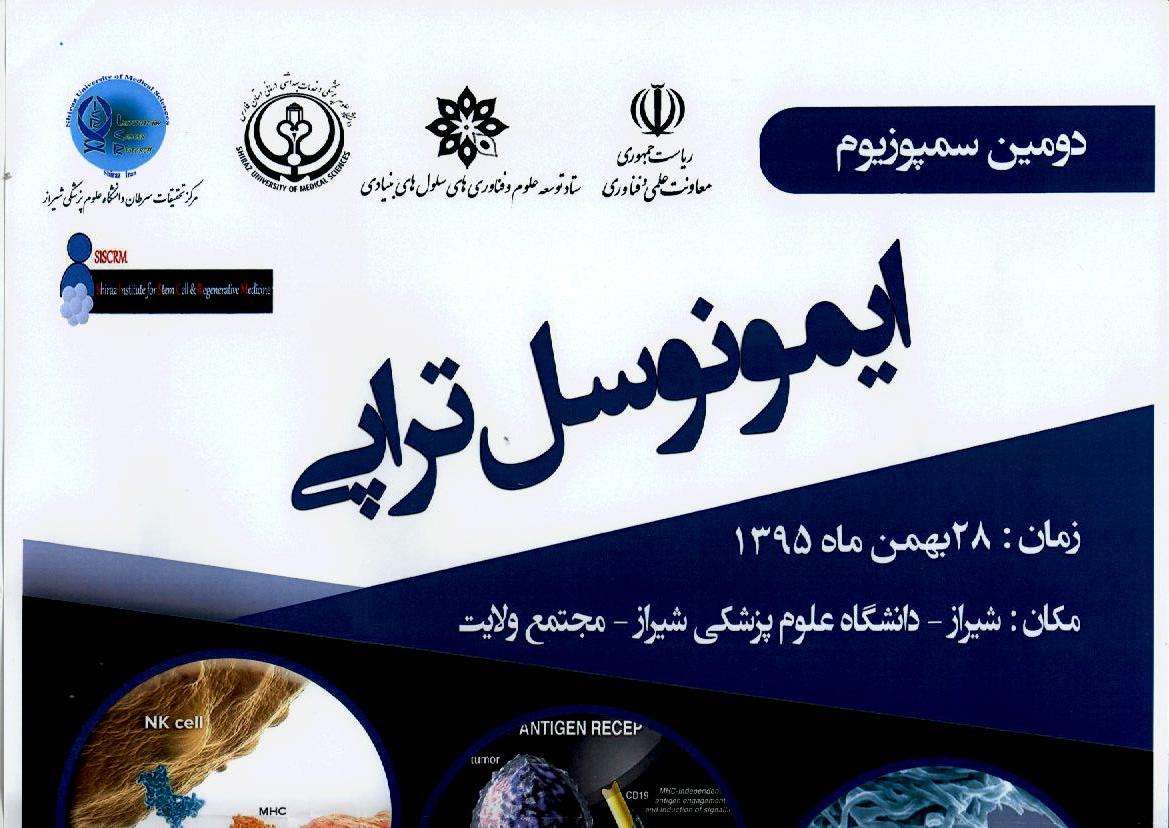 ستاد توسعه علوم و فناوری های سلول های بنیادی معاونت علمی و فناوری ریاست جمهوری با همکاری دانشگاه علوم پزشکی شیراز (انستیتو سلول های بنیادی وپزشکی بازساختی و مرکز تحیقات سرطان ) اقدام به برگزاری "سمپوزیوم یک روزه ایمونوسل تراپی در شیراز " در تاریخ 28 بهمن ماه 1395 در دانشگاه علوم پزشکی شیراز-مجتمع ولایت نموده است.