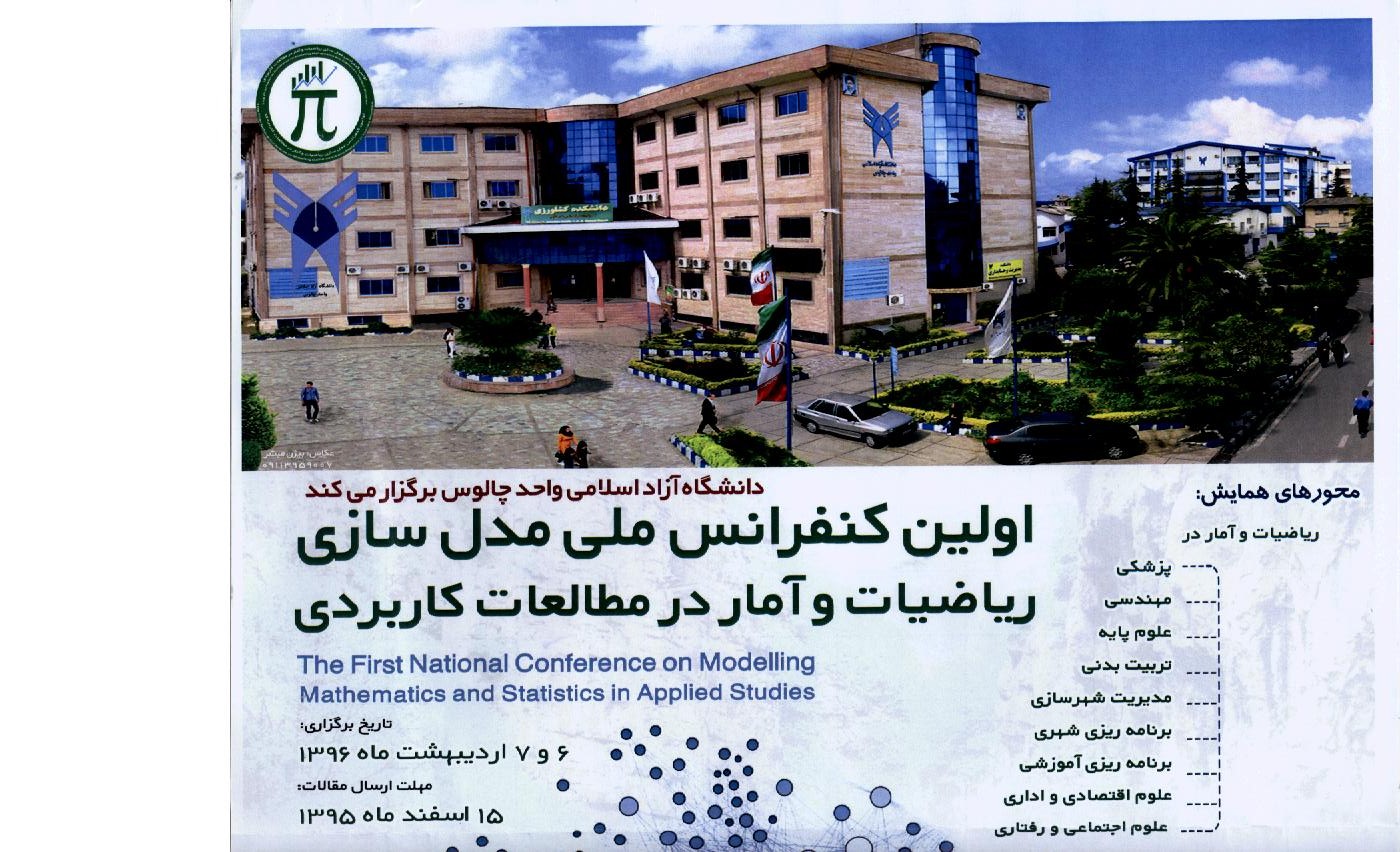 کنفرانس ملی مدلسازی ریاضیات و آمار در مطالعات کاربردی در تاریخ 6 و7 اردیبهشت 1396 در دانشگاه آزاد واحد چالوس برگزار خواهد شد.
