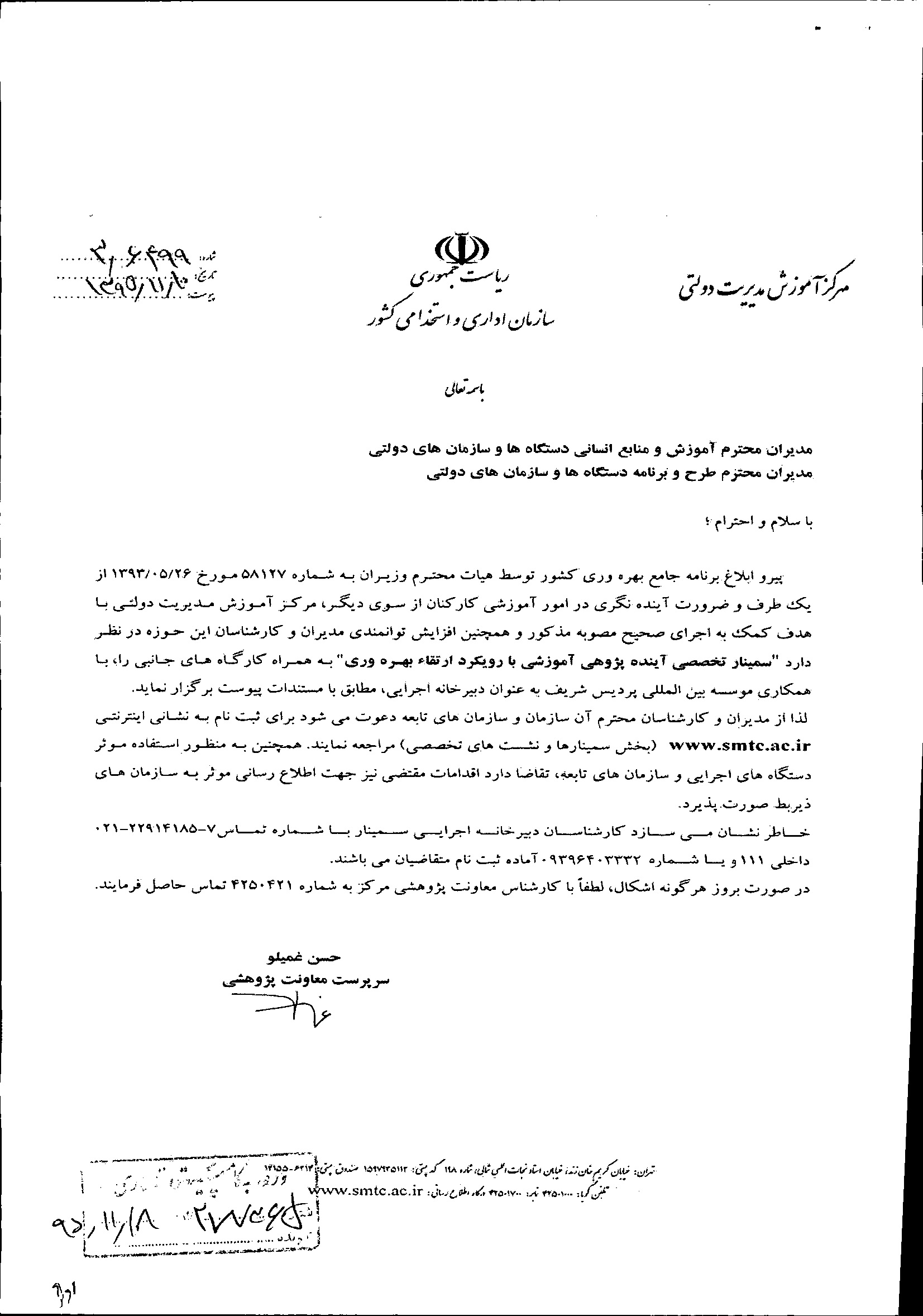 برای دزیافت نامه "برگزاری سمینار تخصصی آینده پژوهشی با رویکرد ارتقاء بهره وری" اینجا کلیک کنید.
