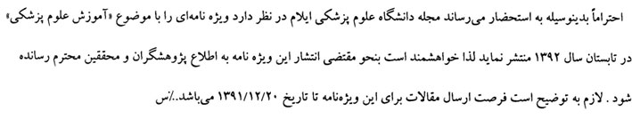 انتشار ويژه نامه آموزش علوم پزشكي دفتر مجله دانشگاه علوم پزشکی ایلام