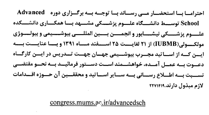 برگزاري دوره Advanced School توسط دانشگاه علوم پزشكي مشهد با همكاري دانشكده علوم پزشكي نيشابور و ا