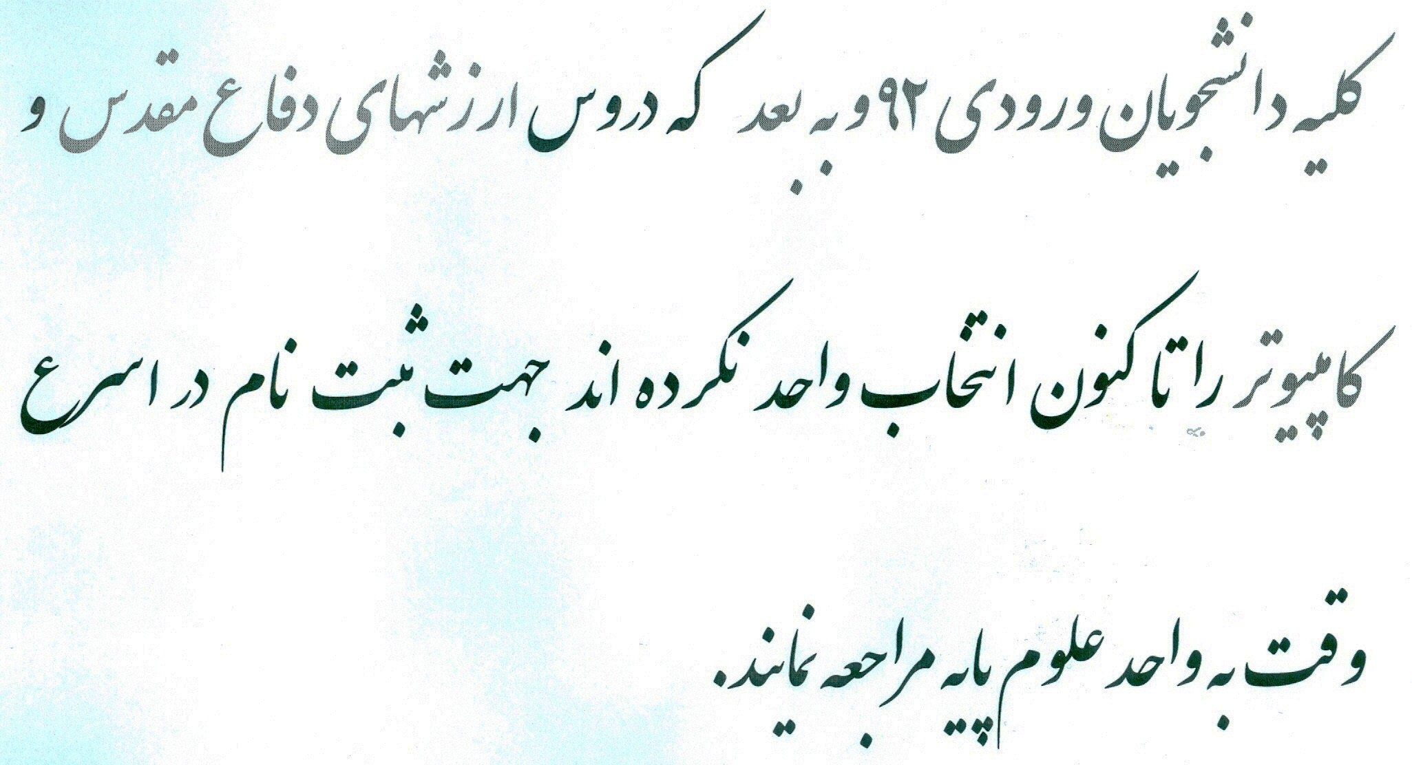 قابل توجه کلیه دانشجویان ورودی 92 و به بعد ... کد خبر : 33718 کپی کلمات کلیدی : علوم پایه انتخاب واحد دانشجویان ورودی 92