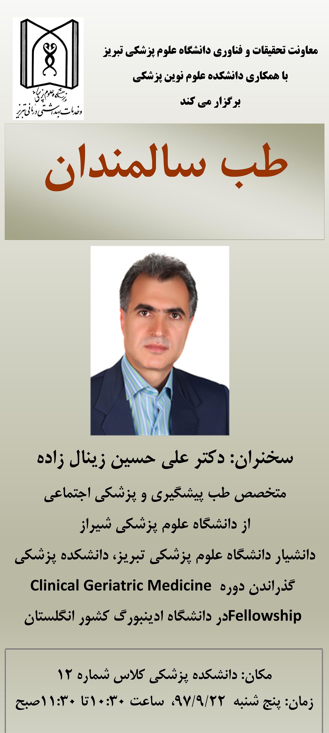 سخنرانی آقای دکتر علی حسین زینال زاده با موضوع : "طب سالمندان"
