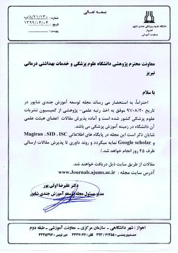 آمادگی پذیرش مقالات اعضای هیئت علمی ... کد خبر : 32185 کپی کلمات کلیدی : دانشگاه علوم پزشکی تبریز آمادگی پذیرش مقالات اعضای هیئت علمی