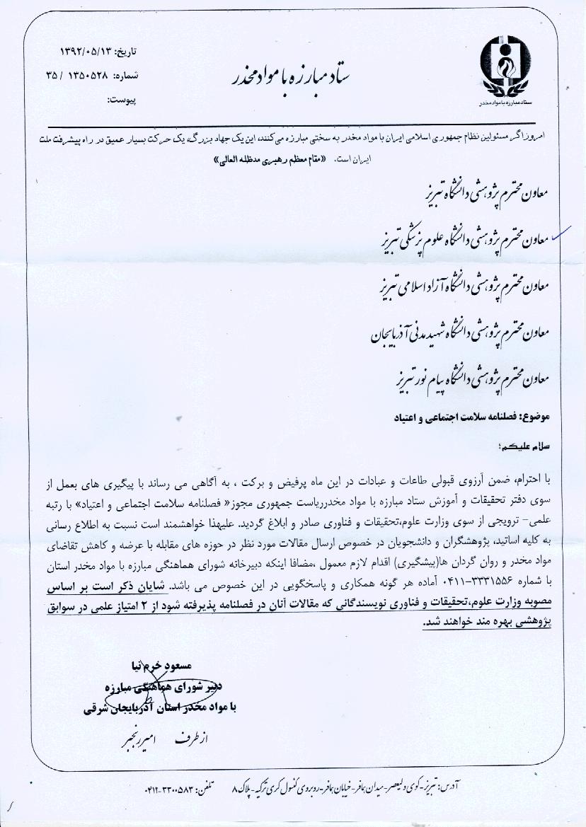 فصلنامه سلامت اجتماعي واعتياد ... کد خبر : 32189 کپی کلمات کلیدی : دانشگاه علوم پزشکی تبریز فصلنامه سلامت اجتماعي واعتياد