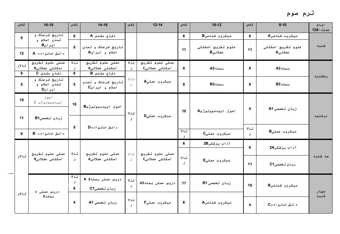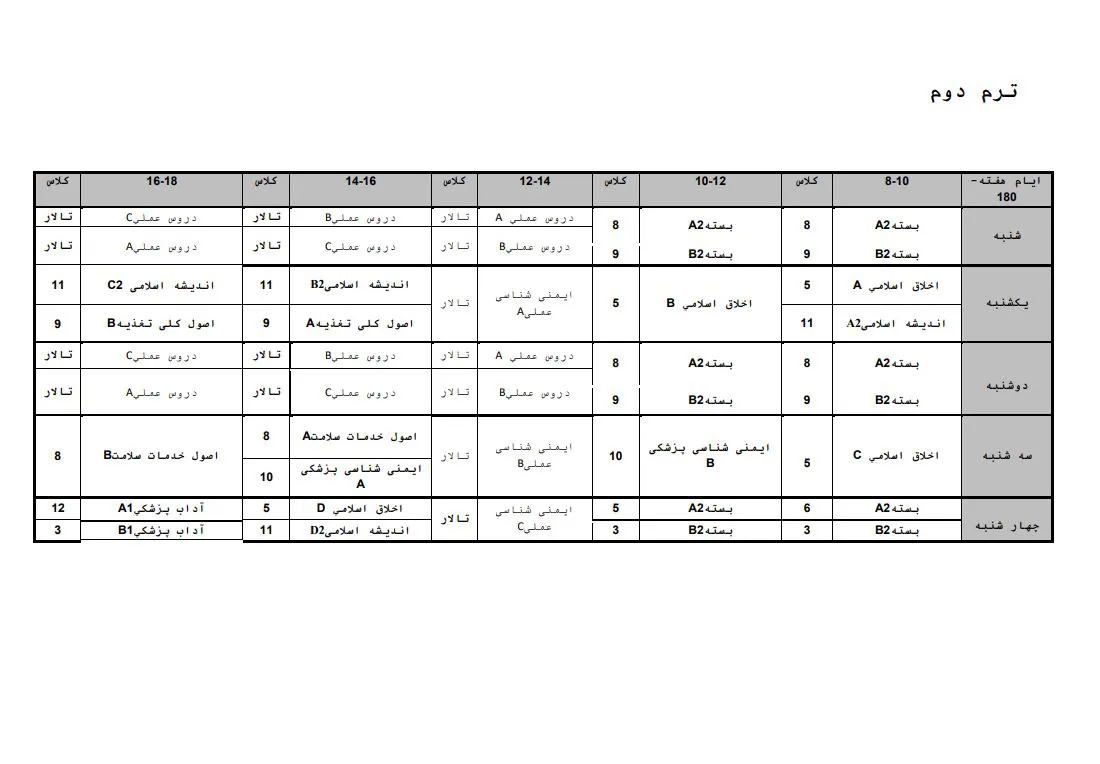 برنامه هفتگی نیمسال اول سالتحصیلی 1401-1400 برنامه هفتگی نیمسال اول سالتحصیلی 1400-1401 * ترم اول * ترم دوم * ترم سوم * ترم چهارم * ترم پنجم