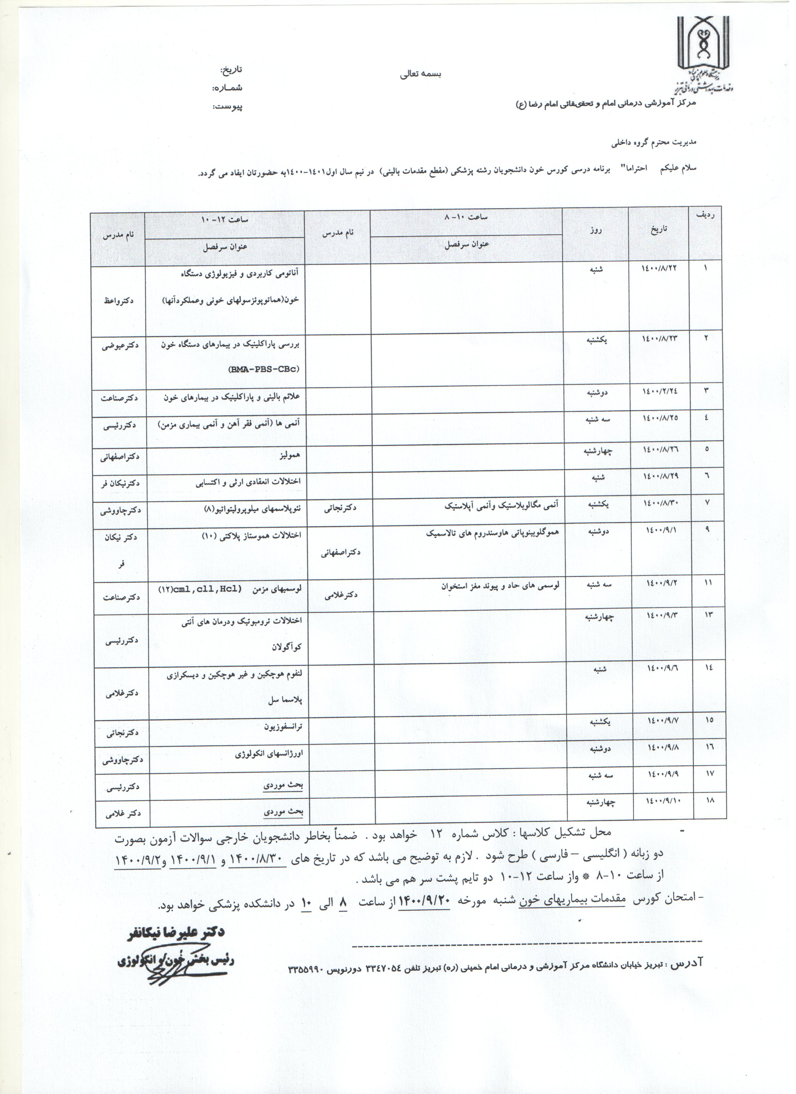 برنامه کورسهای مقطع فیزیوپات