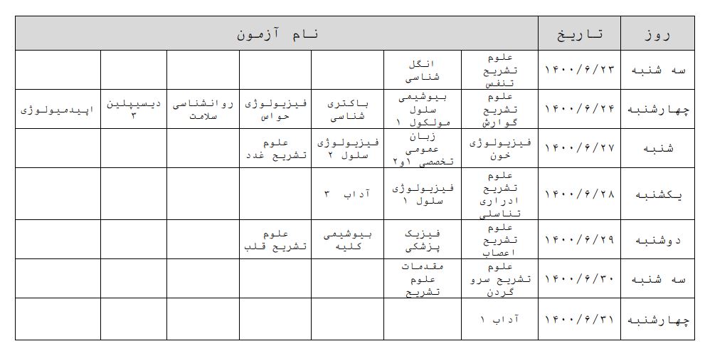 برنامه آزمونهای مجدد مقطع علوم پایه