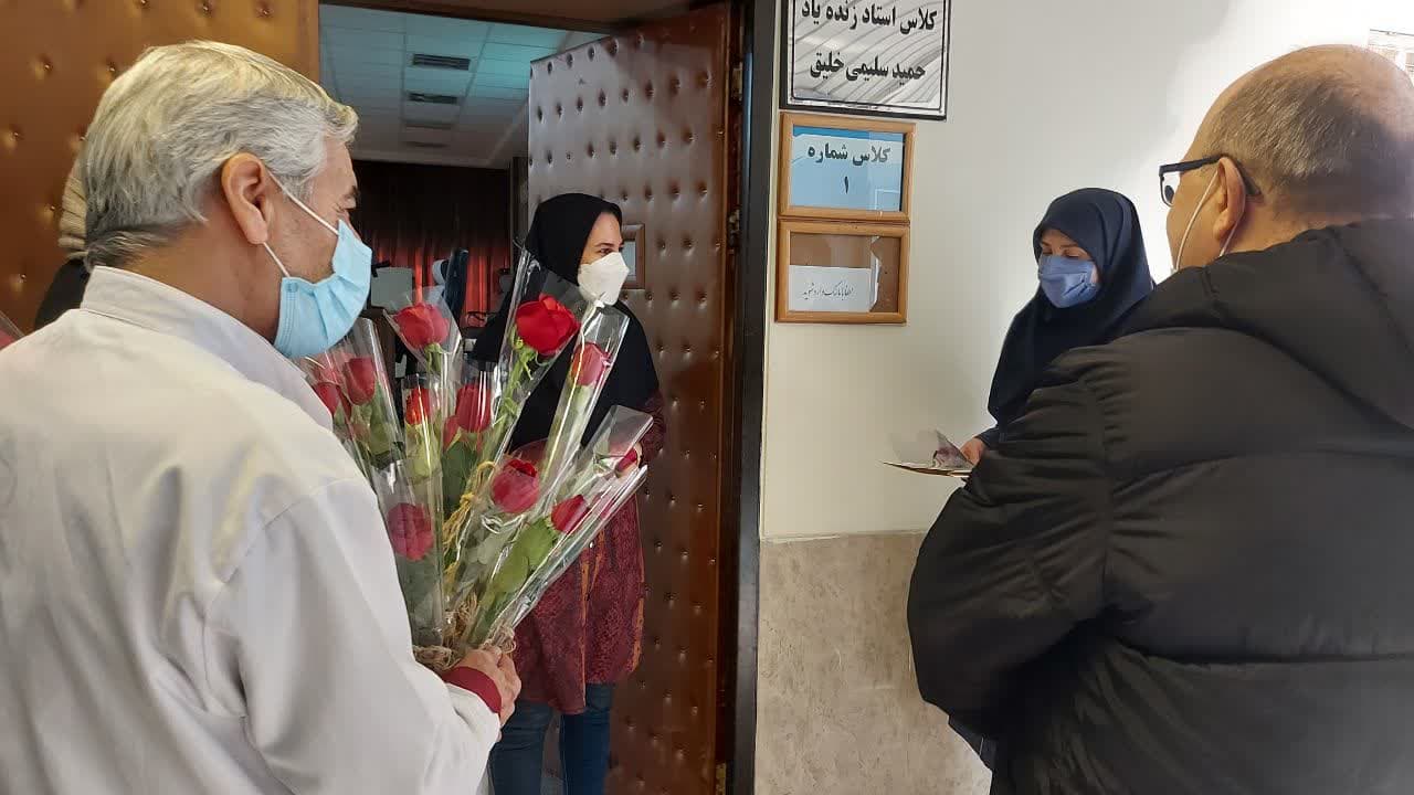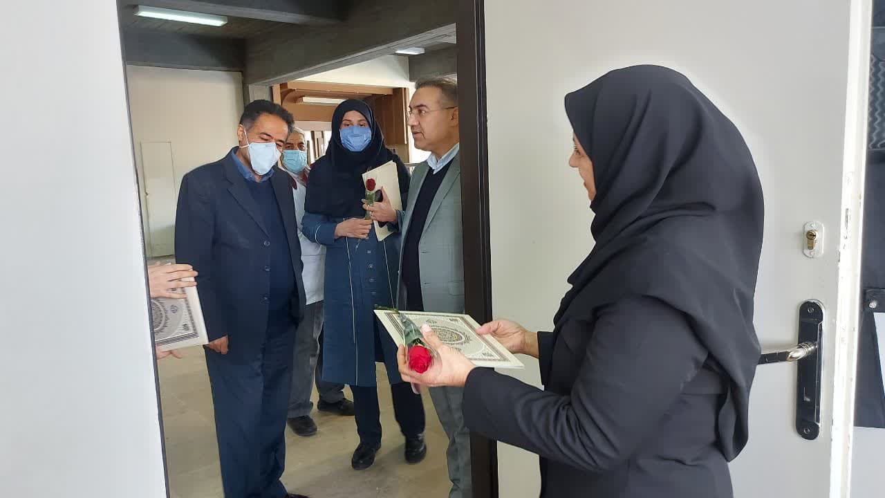 طی این مراسم رئیس دانشکده پزشکی و همراهان جهت عرض تبریک به بانوان شاغل در این مرکز به صورت حضوری به اتاق های پرسنل خانم رفته و با اهداء لوح و شاخه گل از بانوان شاغل در دانشکده پزشکی تقدیر به عمل آورد.