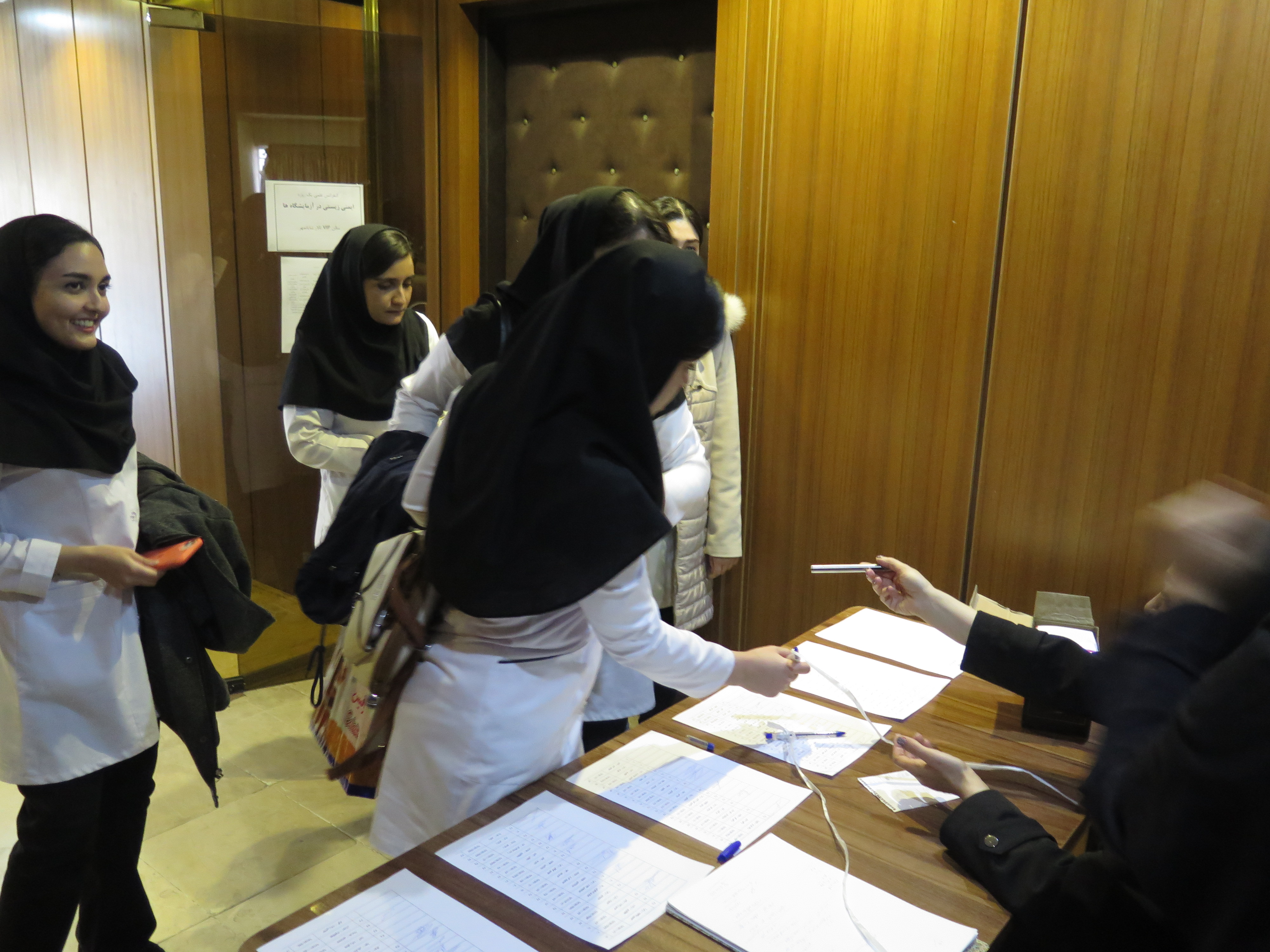 قبل از شروع مراسم روپوش سفید و پن لایت های اهدایی دانشکده در اختیار دانشجویان قرار گرفت.