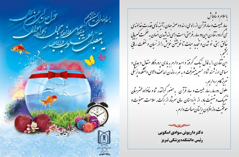 این تقارن را به فال نیک گرفته و امید دارم به یاری پروردگار متعال و همدلی و مساعی ارزشمند شما در مسیر پیشرفت و به ثمر رساندن اهداف والای دانشکده پزشکی تبریز گام برداریم.