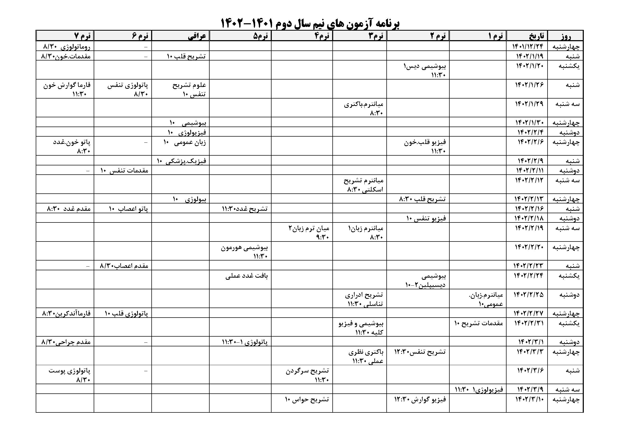 تاریخ انتشار : سهشنبه ۵ اردیبهشت ۱۴۰۲ تعداد بازدید کنندگان خبر : 38 زمان مطالعه : 1 دقیقه زمانبندی آزمون برنامه زمانبندی آزمونهای نیمسال دوم 1402-1401 کد خبر : 34215 کپی ارسال نظر ثبت