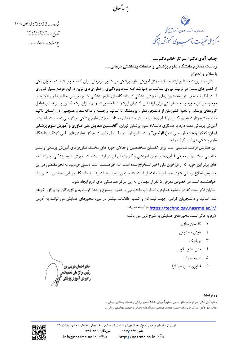 همایش نخستین همایش ملی فناوری و آموزش علوم پزشکی ایران: کنگره و جشنواره ملی شیخ الرئیس کد خبر : 34235 کپی