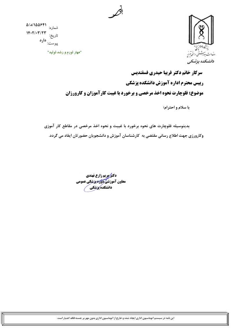 فلوچارت نحوه اخذ مرخصی و برخورد با غیبت کارآموزان و کارورزان