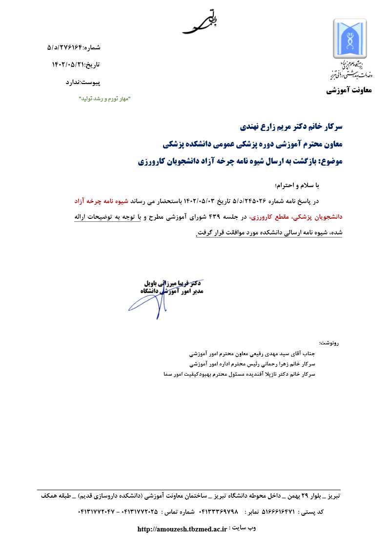 تاریخ انتشار : چهارشنبه ۱ شهریور ۱۴۰۲ تعداد بازدید کنندگان خبر : 38 زمان مطالعه : 1 دقیقه اطلاعیه شیوه نامه چرخه آزاد دانشجویان کارورزی کد خبر : 34263 کپی ارسال نظر ثبت
