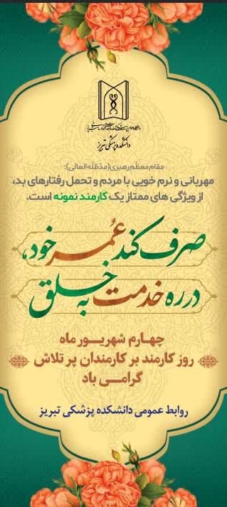 تبریک رئیس دانشکده پزشکی تبریز به مناسبت فرا رسیدن روز کارمند