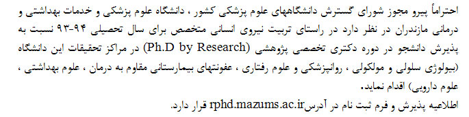 فراخوان پذیرش دانشجو در دوره دکترای تخصصی(Ph.D. by Research ) در دانشگاه علوم پزشکی مازندران
