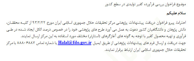 فراخوان بررسي فرآورده كفير توليدي در سطح كشور
