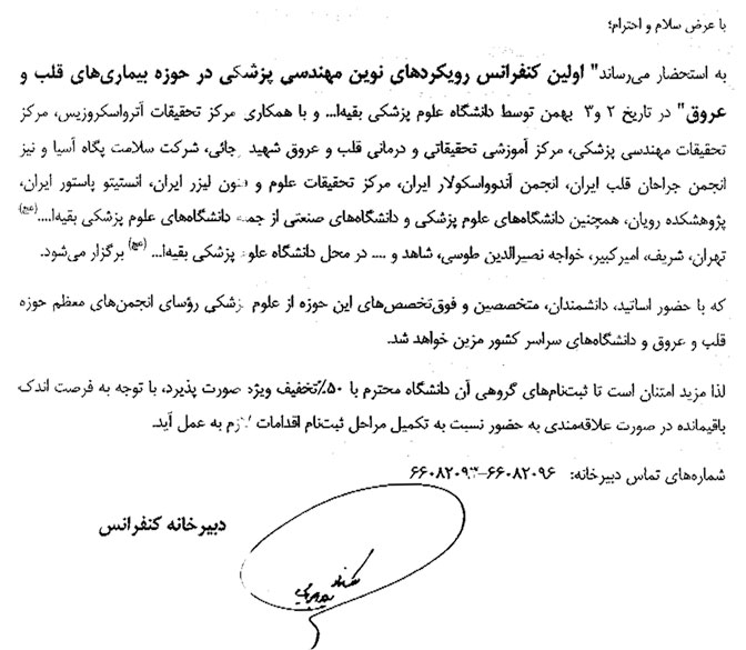 كنفرانس رويكرد نوين مهندسي پزشكي در حوزه بيماريهاي قلب وعروق