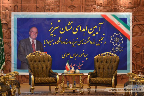 حواشی جالب از اهدای نشان تبریز به «پروفسور عباس علوی» ... به گزارش تبریزمن، شهردار تبریز با اهدای نشان تبریز به «پروفسور عباس علوی» که در آمریکا سکونت دارد از اهتمام پزشکی این استاد صاحبنام تبریزی تقدیر کرد. کد خبر : 32734 کپی