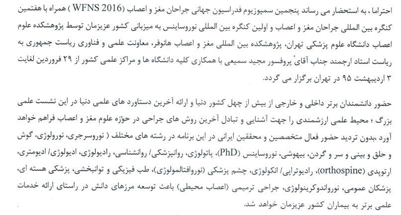 پنجمين سمپوزيوم فدراسيون جهاني جراحان مغز و اعصاب  در سال 95