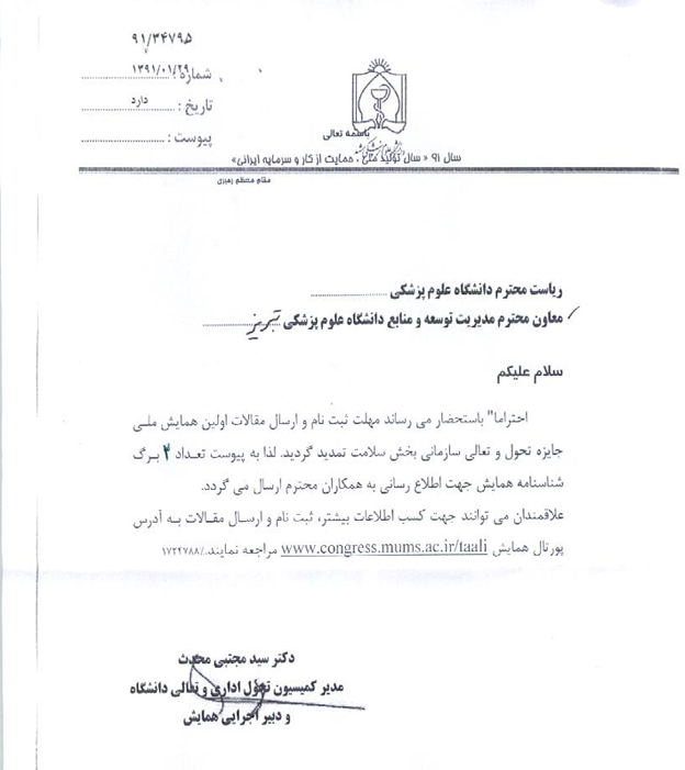 مهلت ثبت نام و ارسال مقالات اولین همایش ملی جایزه تحول و تعالی سازمانی بخش سلامت