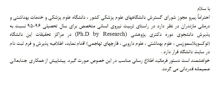 پذیرش دانشجوی دوره دکتری پژوهشی