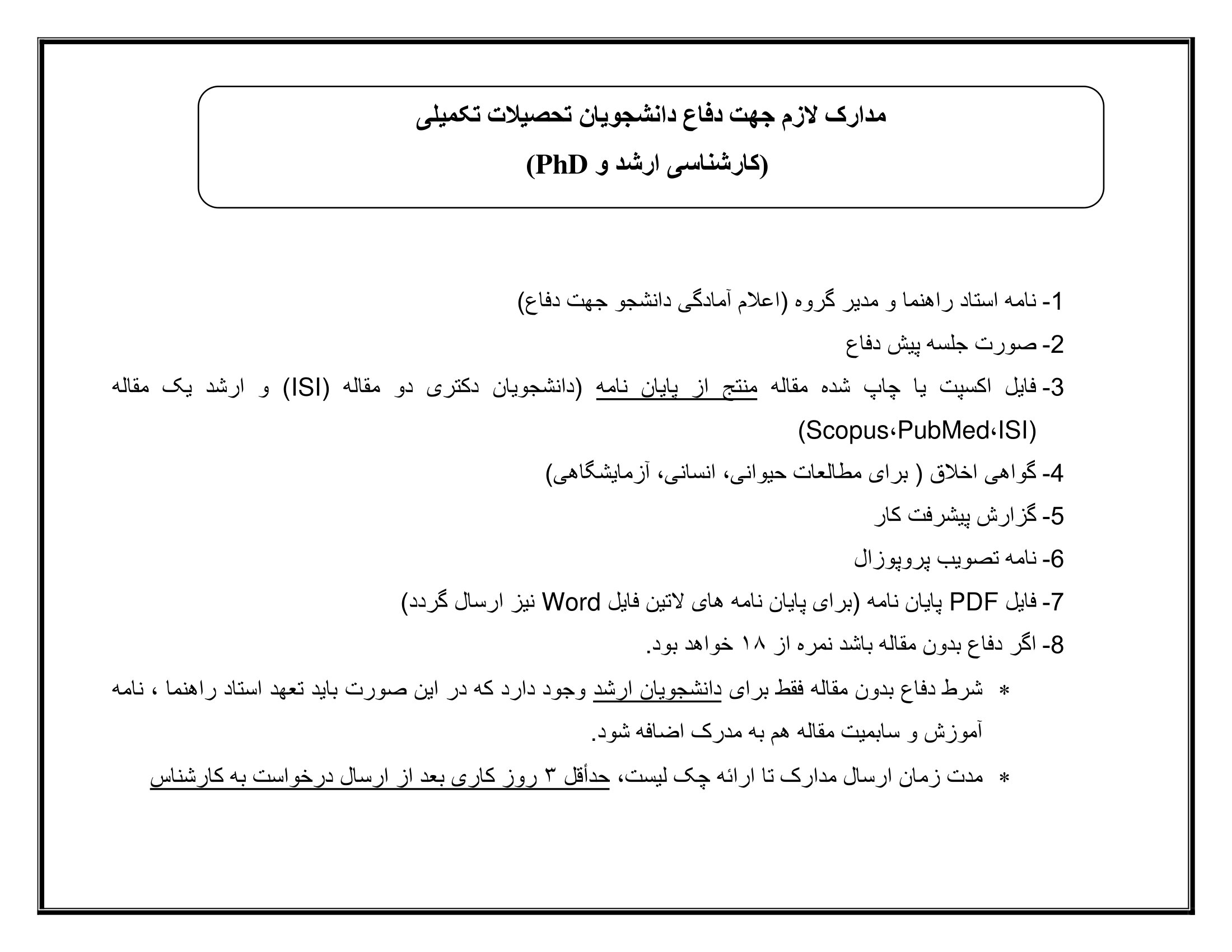 مراحل ارسال مدارک جهت دفاع از پایان نامه