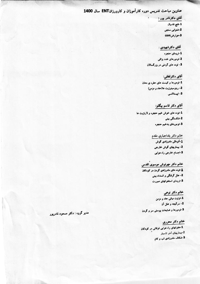 مباحث تدریس دوره کارآموزان و کارورزان ENT